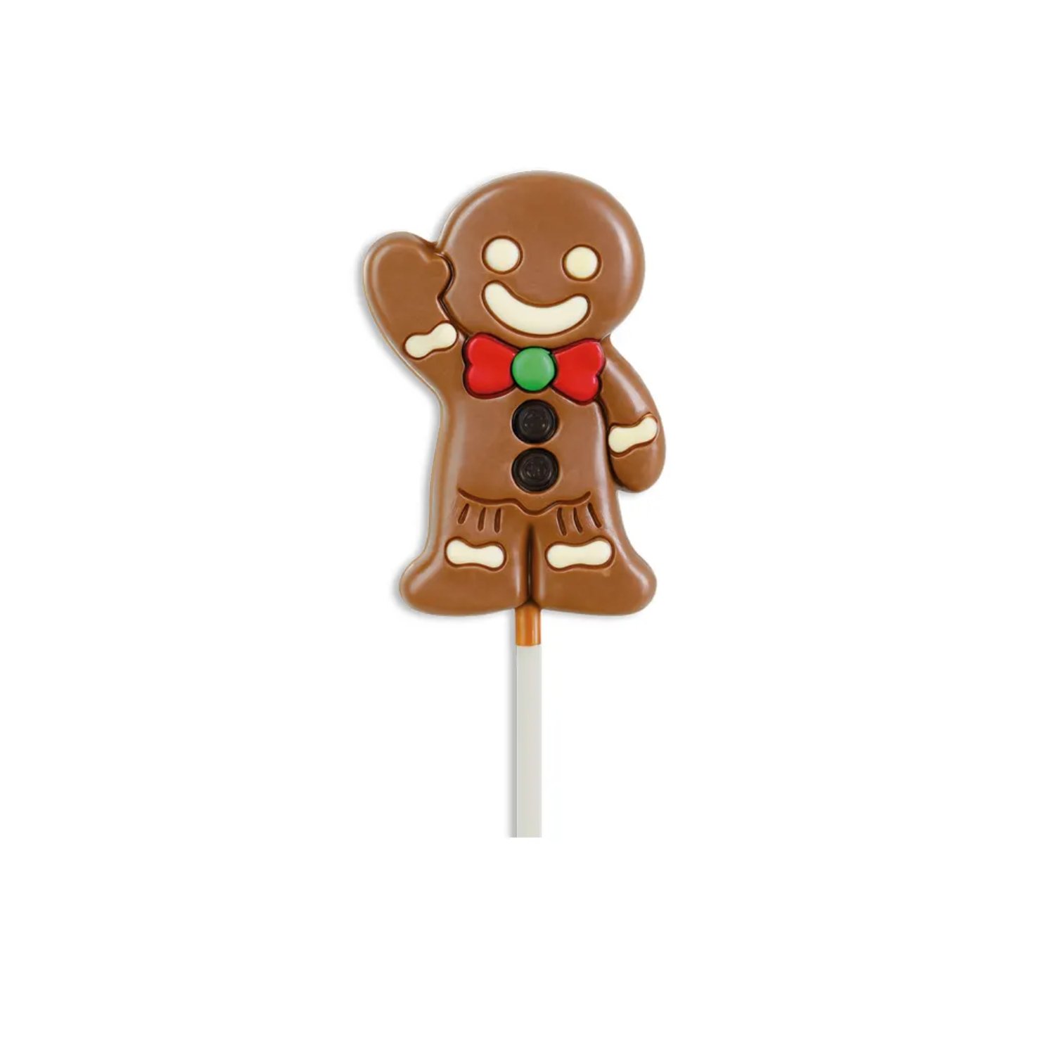 Χριστουγεννιάτικα γλειφιτζούρια από σοκολάτα γάλακτος σε σχέδιο Άγιος Βασίλης. Ύψος γλειφιτζουριού: 16,0 εκ.